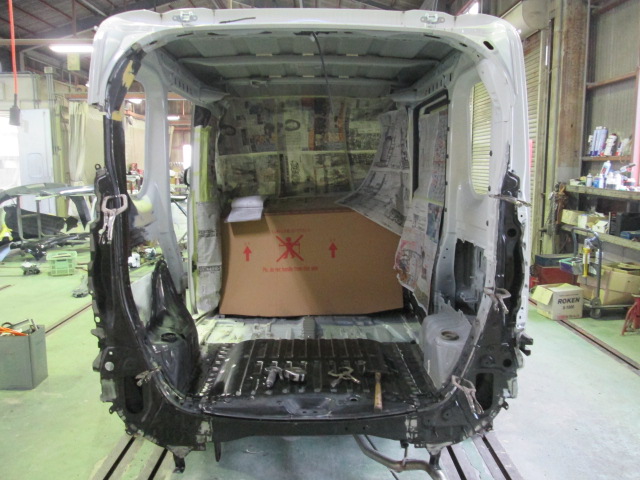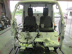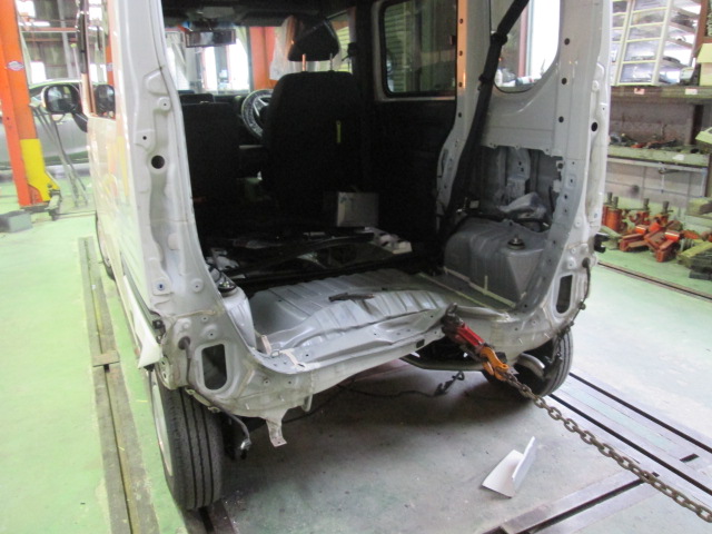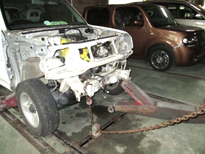 フレーム修正機で多方向・多点・多重引き作業を行い、正確な作業を行います。
